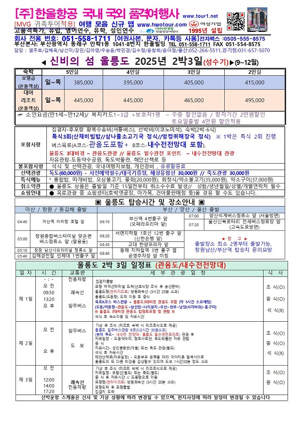 [부산, 경남, 울산] 울릉도 2박 3일 천혜의 비경, 동해의 신비로운 섬으로 떠나자!!!