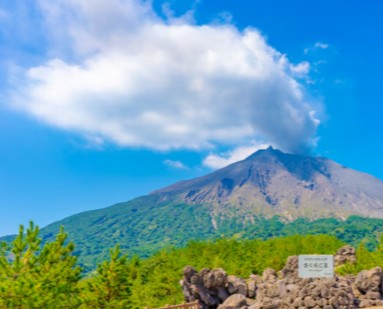 2) 사쿠라지마: 규슈 남부, 별칭 "긴코 만"이라고 불리는 세계에서도 유명한 활화산인 사쿠라지마는 긴코만을 사이에 두고 가고시마에서 4km 떨어진 화산으로 가고시마의 상징이라 할 수 있으며, 사쿠라지마의 둘레는 52km이며, 기타다케(北岳 1117m), 나카다케(中岳 1060m), 미나미다케(南岳 1040m) 등 세개의 봉우리가 연이어 있으며 미나미다케는 지금도 활발하게 화산활동이 진행중입니다.