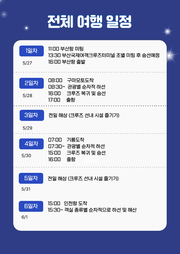 여행 일정은 계약 체결 시 예상하지 못한 부득이한 사정 등이 발생하는 경우 여행자의 사전 동의를 거쳐 변경될 수 있음을 양지하여 주시기 바랍니다.