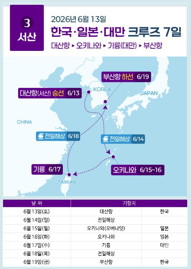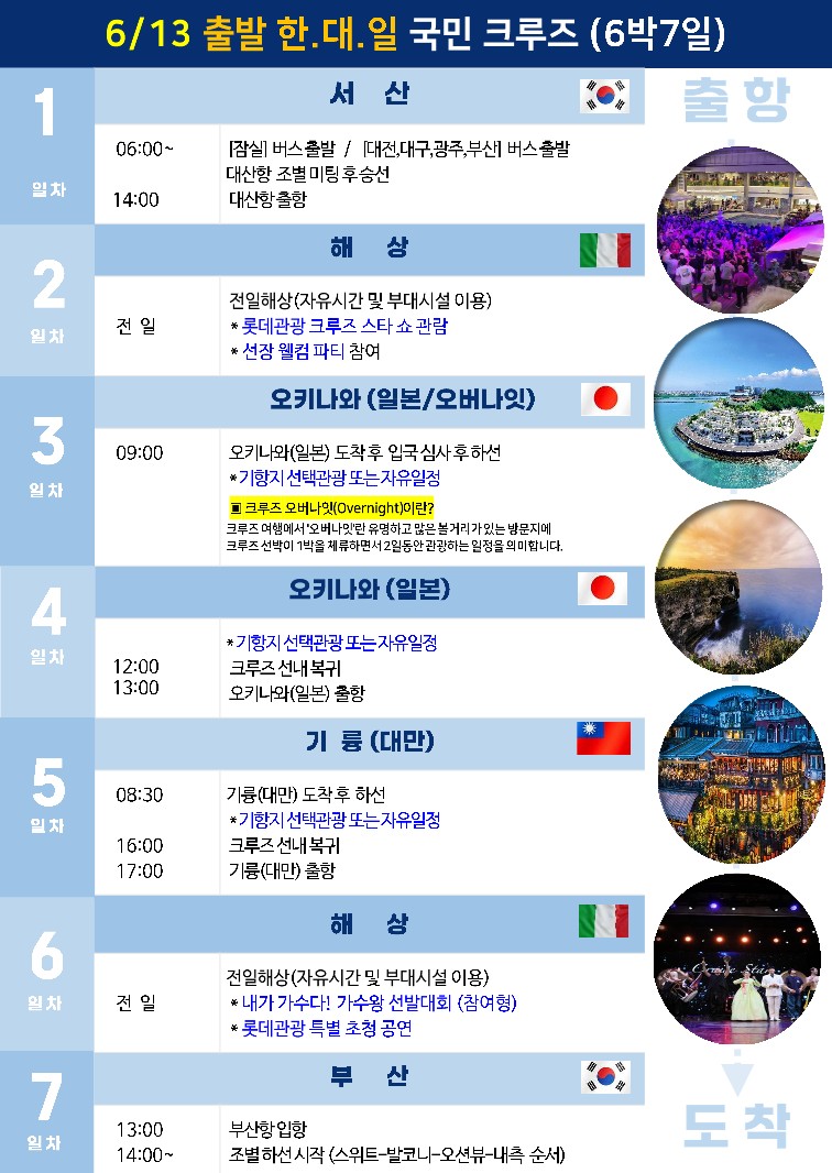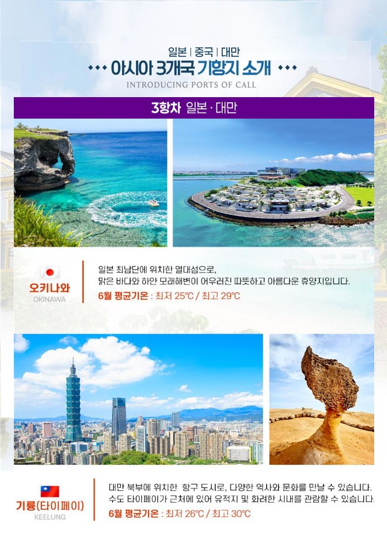 6월13일 출발확정 한국. 일본. 대만. 3개국 크루즈