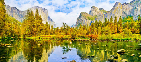 만들어진 절경으로 유명하며 연간 3백만에 이르는 관광객들과 하프돔 등 암벽이 많아 등반가들이 즐겨 찾는 곳입니다.