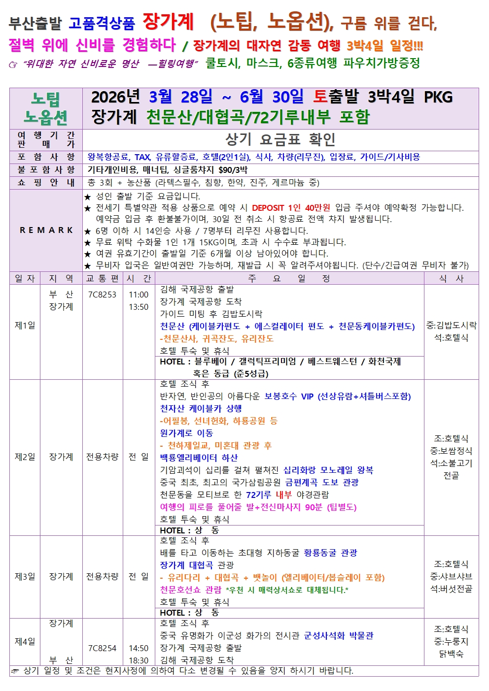 천문산 대협곡 72기루 내부 부용진 2026년 시즌 상품모음 GBBN982T-CH