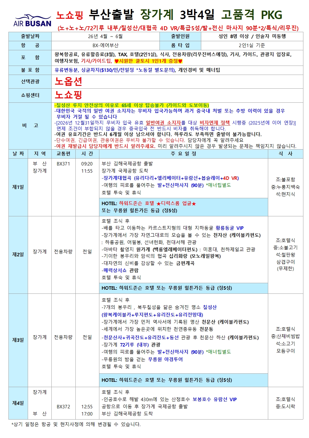 11:05 [7C8253편] 부산출발, 장가계 향발