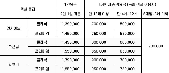 07 : 30 ~ 10:30 객실 종류별 순차적으로 하선
