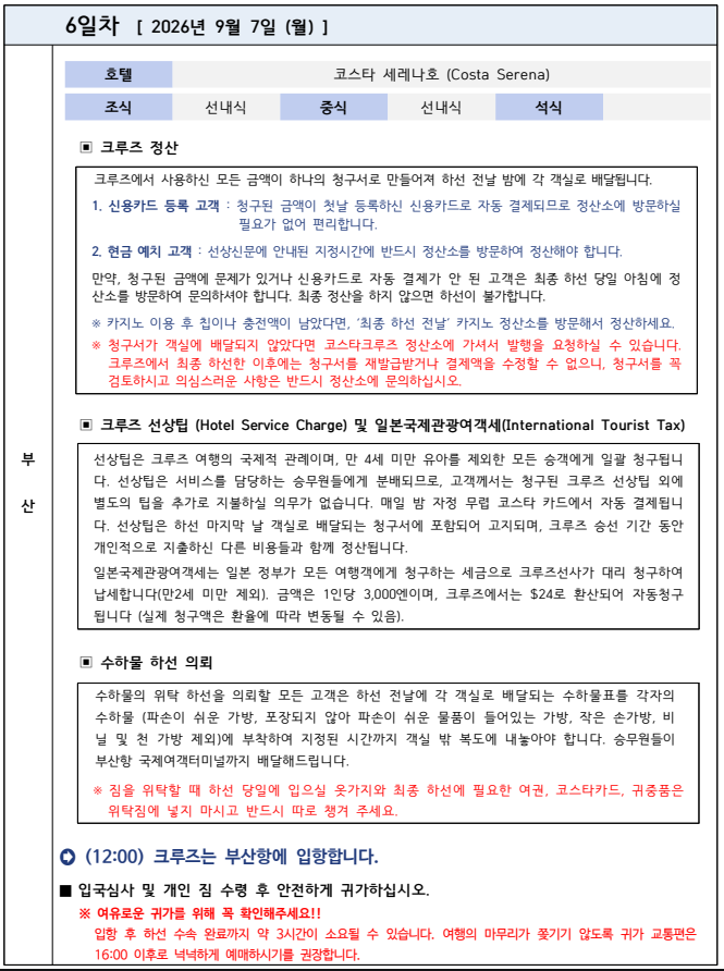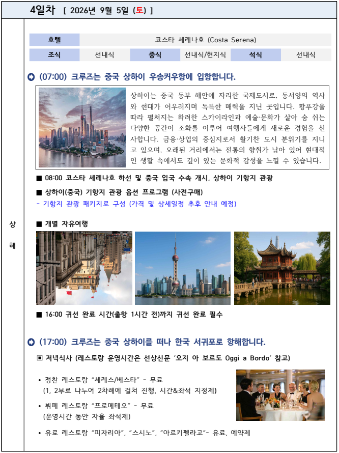 '코스타 세레나호'로 떠나는 4박 6일 한국, 중국, 일본 크루즈 삼국지