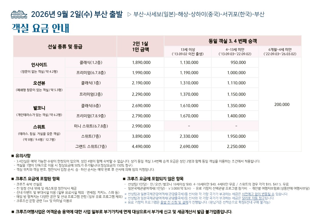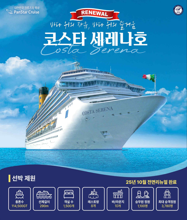 [부산출발] 9월2일 출발확정 한국, 중국, 일본 3개국 크루즈 '코스타 세레나호'로 떠나는 5박 6일